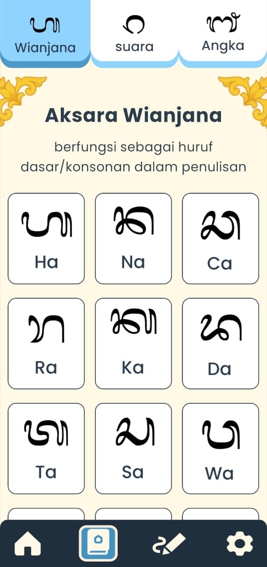 - Navigasi Mudah: Tampilannya sederhana, ideal untuk yang baru belajar aksara.